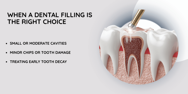 Choosing a dental filling comes down to how much damage your tooth has and the type of problem you’re facing. Fillings work best when the damage is small and your tooth can still be saved without needing extra support.