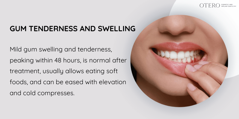 This swelling happens because your body sends extra blood flow to the area to promote healing. The tissue around the treated tooth may feel softer than usual when you brush.